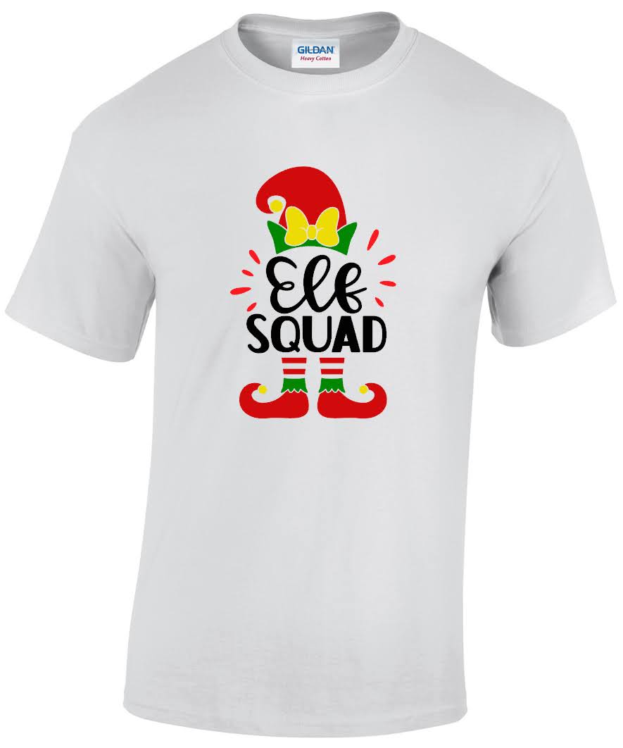 Hey, Elf Squad! Bundle of 3 t-shirts, two adults and one baby / toddler, each with a choice of regular elf, or an elf with bow.
