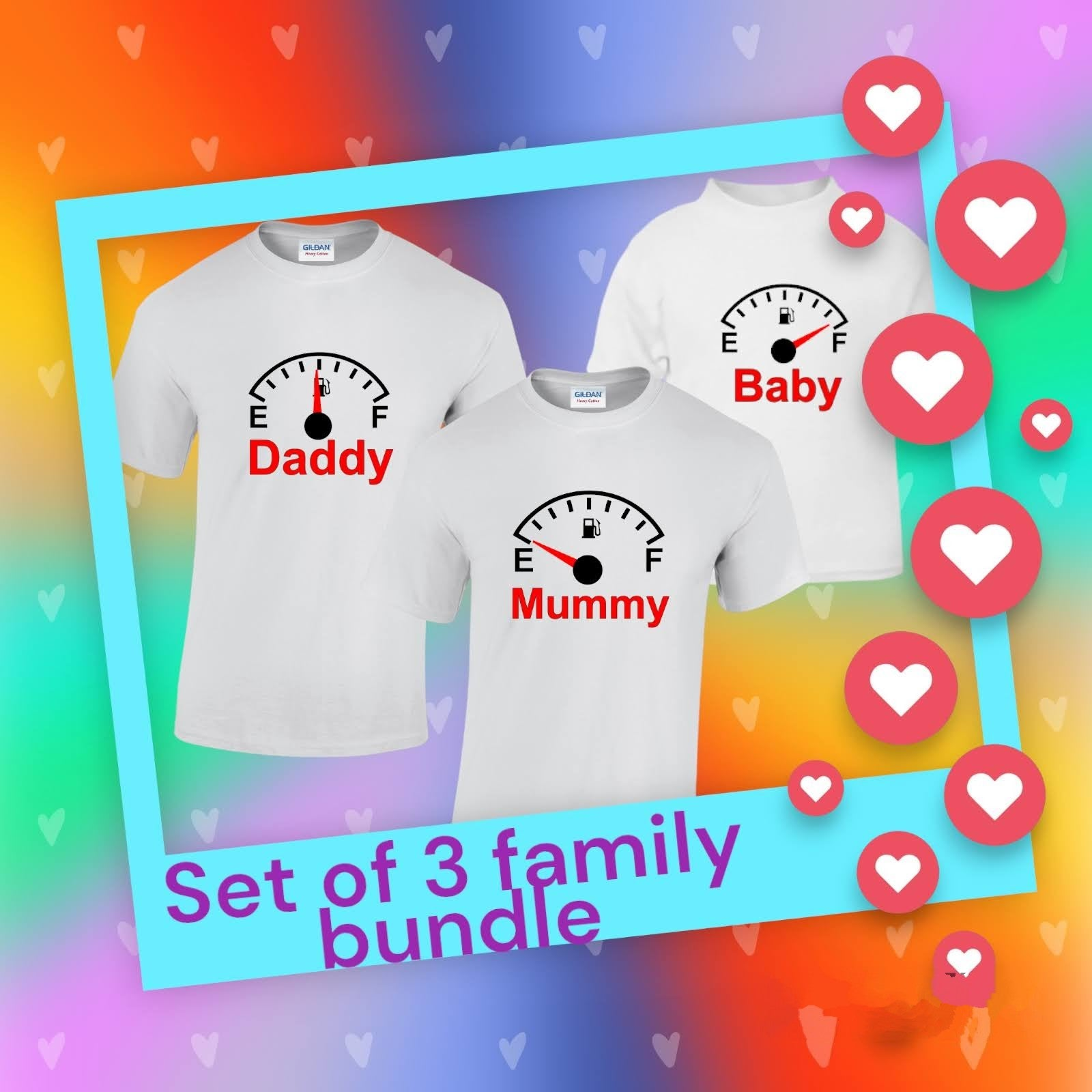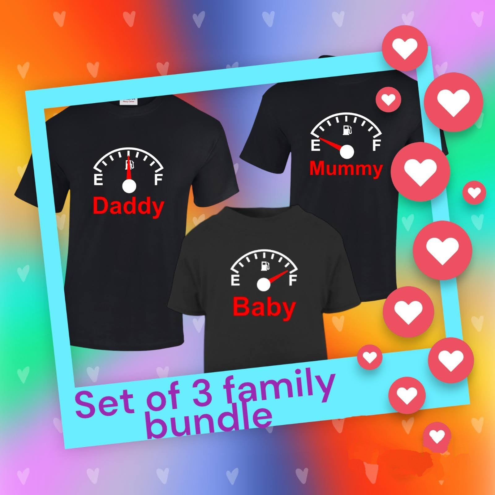 Fuel Gauge Set of 3 Family Bundle T-Shirts With Names