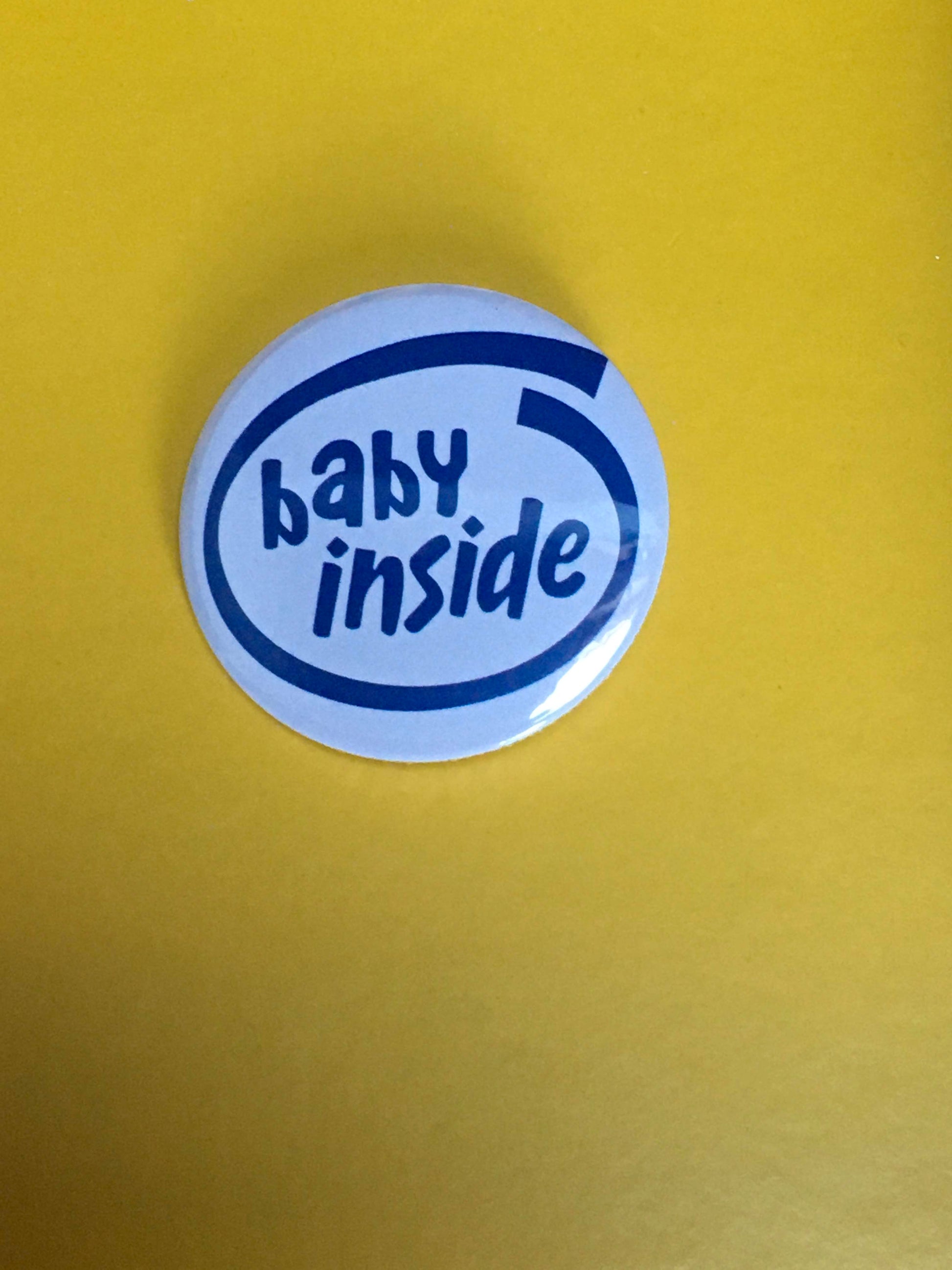 These round badges with cheeky messages are a great way to announce your bump to the world!