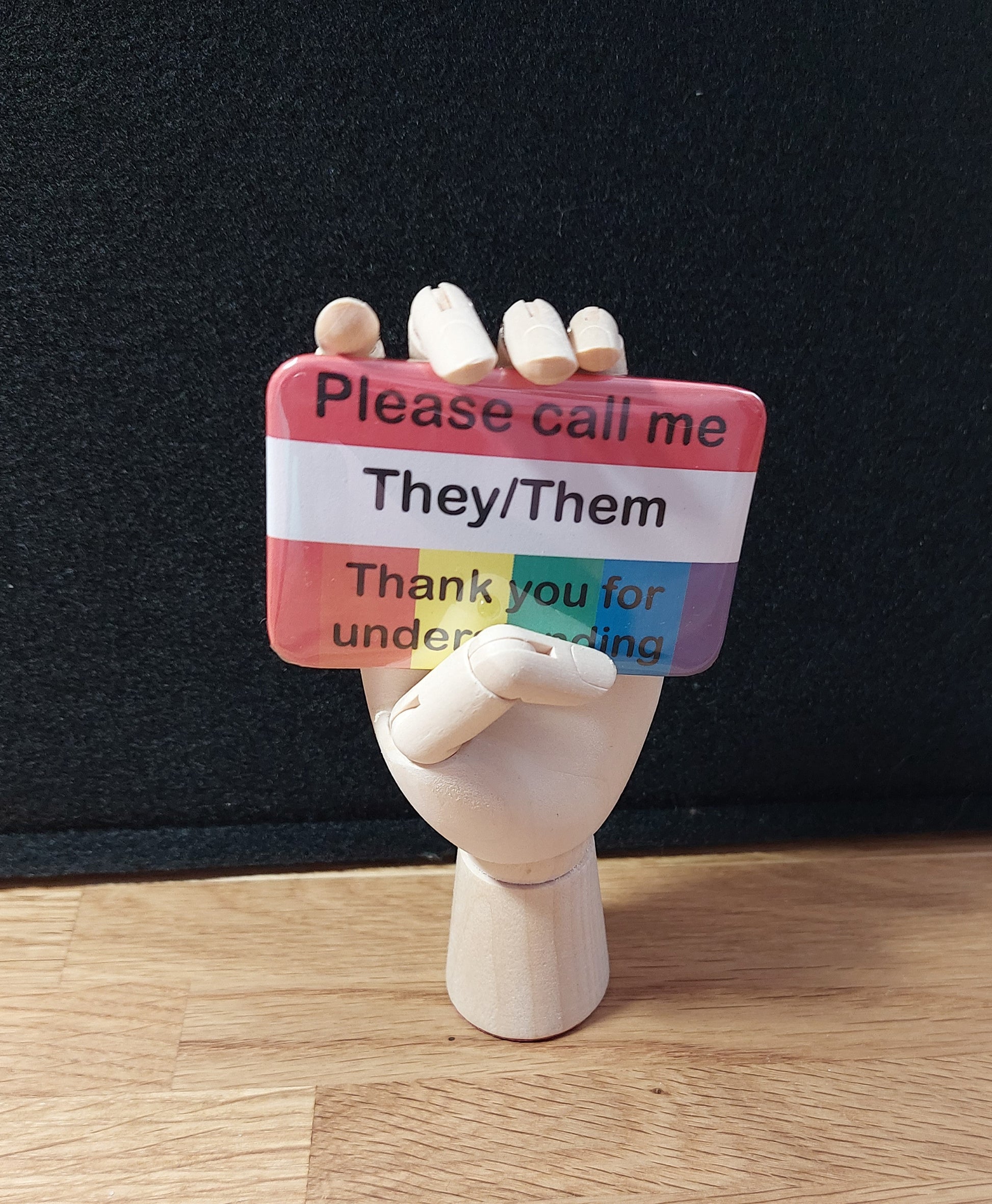 There are pronoun options to choose from, or the badges can be left blank for you to add your own when you receive your badge! Previous customers have used stickers and whiteboard pens.