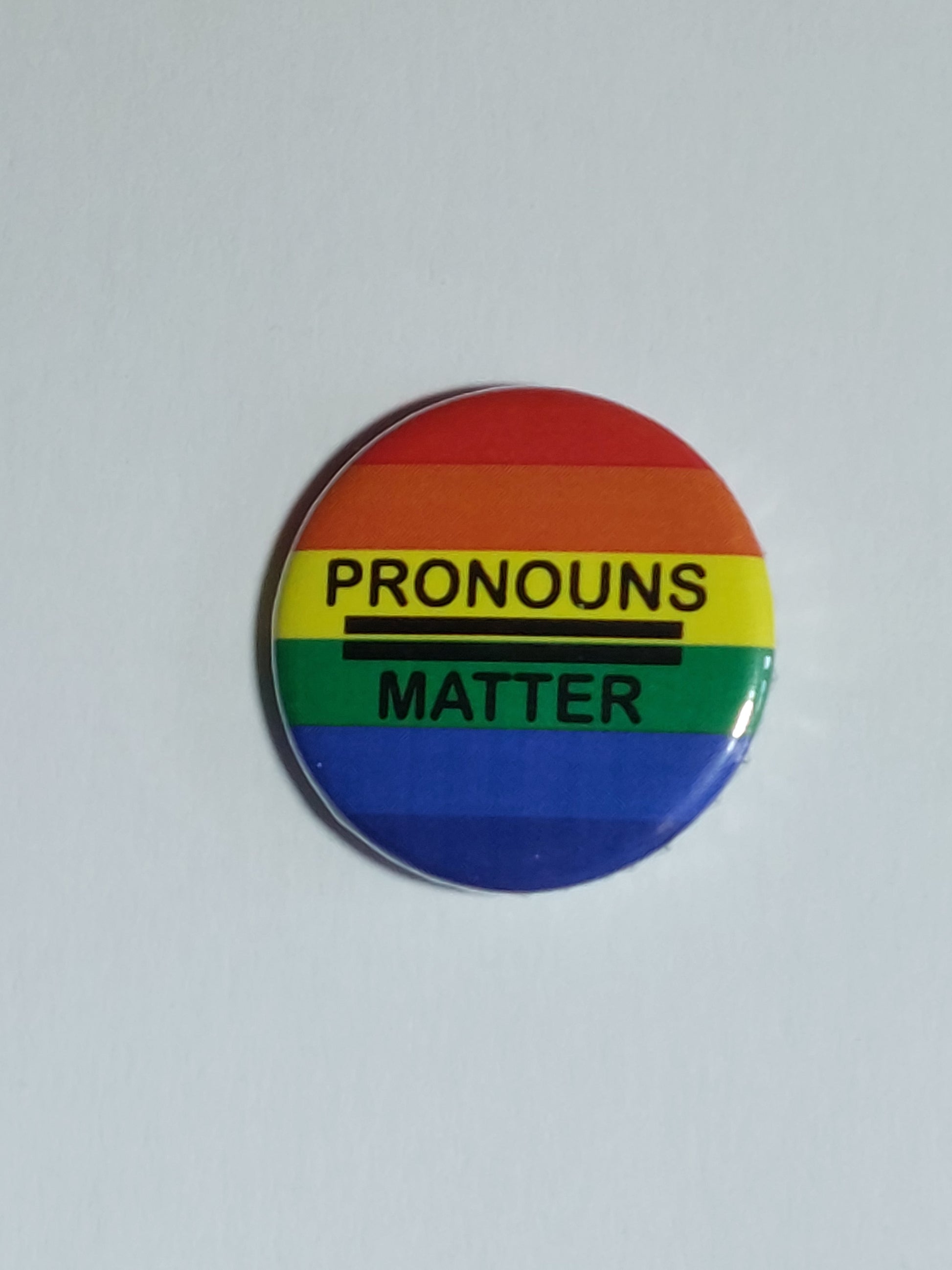 Show your support with this little Pronouns Matter badge all year round, not just during Pride month.